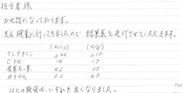 先日検査に行ってきましたので、結果表を送付させていただきます。