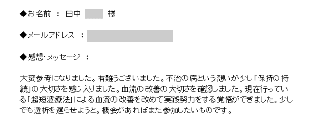 現在行っている「超短波療法」による血流の改善を改めて実践努力をする覚悟ができました。