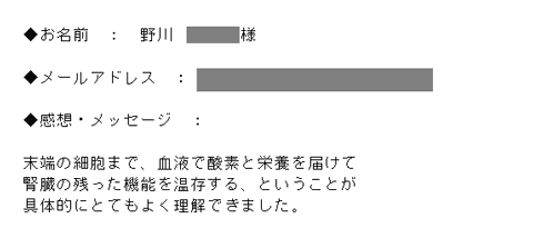 腎臓病患者さんは、病気の初期段階から、血流改善に努め、自分で腎臓病の治療をしていくことが大切といえましょう。
