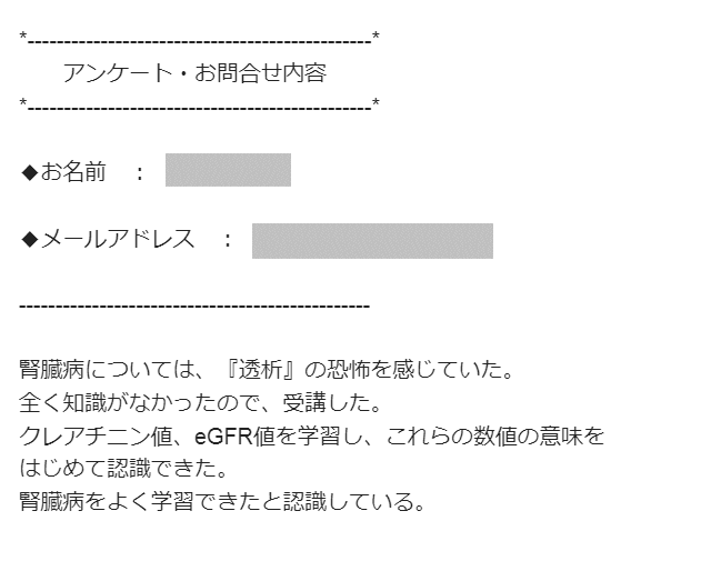 クレアチニン値、eGFR値を学習し、これらの数値の意味をはじめて認識できた。