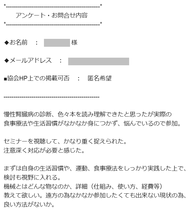 セミナーを視聴をして、私の腎臓はあと5%で透析予備軍となるという事に、ショックを受けた。