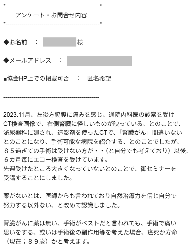 「腎臓がん」間違いないとのことになり、手術可能な病院を紹介する、とのことでしたが、