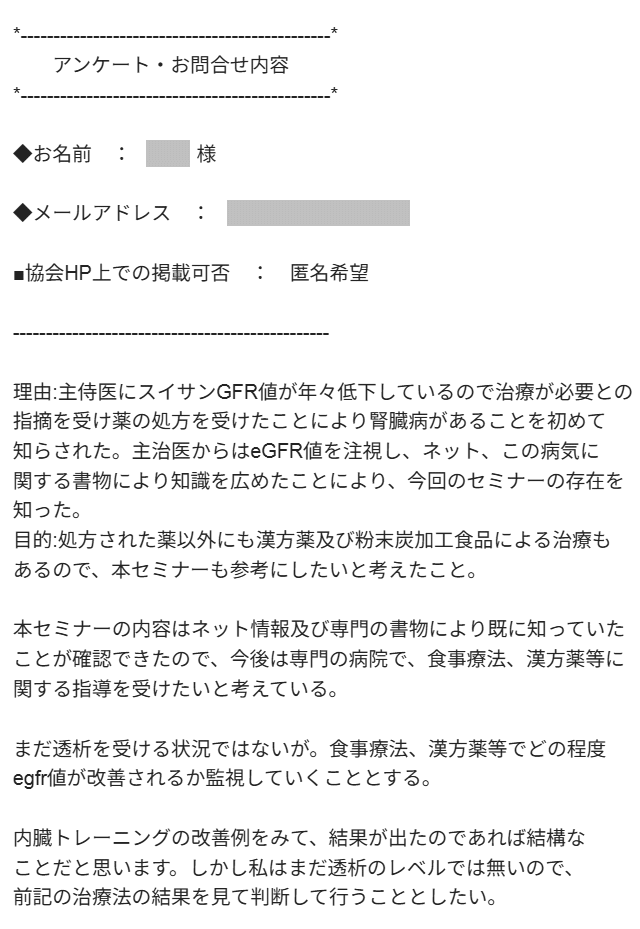 主治医からはeGFR値を注視し、ネット、この病気に関する書物により知識を広めたことにより、