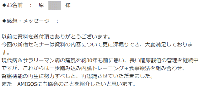 現代病&サラリーマン病の痛風を約30年も前に患い、長い間尿酸値の管理を継続中ですが、これからは一歩踏み込み内臓トレーニング+食事療法を組み合わせ、腎臓機能の再生に努力すべしと、再認識させていただきました。