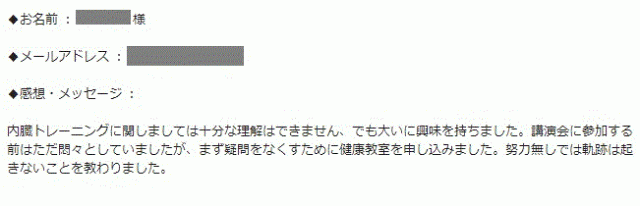 (3)各症状における改善事例等を明示していただき、内臓トレーニング実践の重要性を感じさせられました。