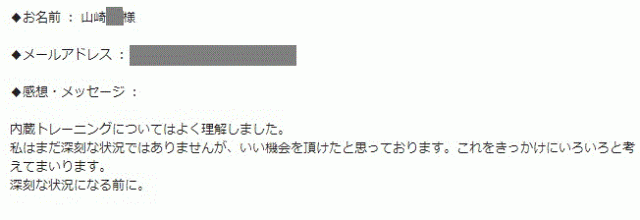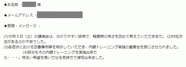 内臓トレーニングの講習会に参加して、腎臓に対しての種々の説明がとても参考になりました。