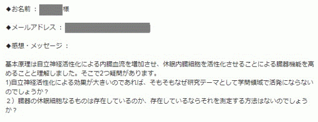 基本原理は自立神経活性化による内臓血流を増加させ、休眠内臓細胞を活性化させることによる臓器機能を高めることと理解しました。そこで2つ疑問があります。
