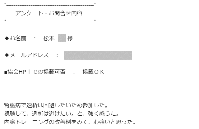 腎臓病は治らない病気ではなく、自分で治せると明るい気持ちになりました。