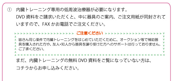 遠方にお住まいで静岡まで行くことが難しい方、仕事や介護で時間が取れない方は自宅で内臓トレーニングをはじめる方法があります。内臓トレーニングを実践されている80%がこの方法で始めていらっしゃいます。また、健康教室を予約されている方でも病状が重い場合は、先に実践を始めて1日でもはやく体の中の血流を改善させることをお勧めします。