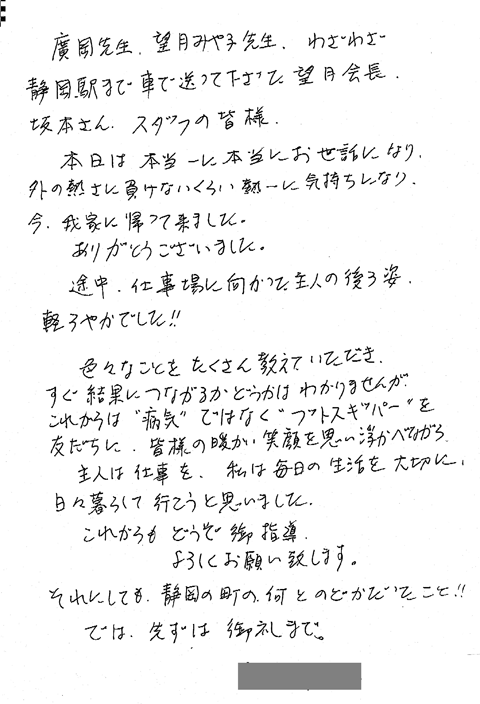 このマッサージ師は私が10数年前から通っておりました。治療師で実は足が浮腫んでから、見せるのが嫌で行かなく為っておりました。