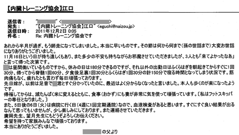 1、まず26日以降にお知らせいたしましたマッサージ治療ですがあれから、3日に一回の割で、少々痛いですが、マッサージ治療をしております。