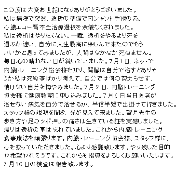 2022.7.29 腎臓病患者さんよりメール