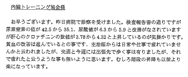 CKDで、1ケ月でクレアチニンが0.3以上、BUNが22も下がるのは実施した療法の効果がはっきり出ているのだろう。