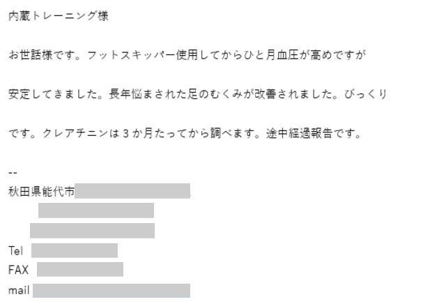 ており常に(-)です。友人が「足首がすっきり細くなったね」と言ってくれました。