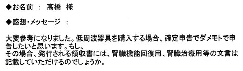 低周波器具を購入する場合、確定申告でダメモトで申告したいと思います。