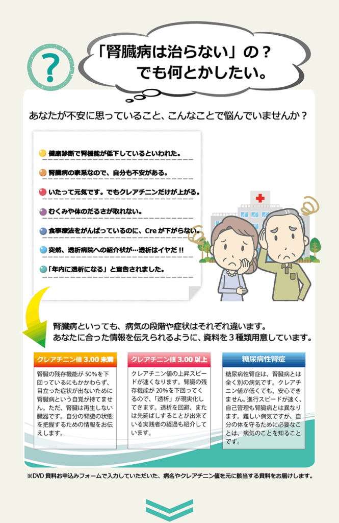 内臓トレーニング資料請求のお申込み. DVDの送付先について お名前必須 フリガナ必須 郵便番号必須 ご住所必須 ※郵便番号を入れると自動的に入力されます。 番地・建物名・部屋番号 電話番号必須 メールアドレス必須 ◆体調に不安をお持ちの方について◆ 状況に合った適切な資料をお届けするために、該当される方の様子を教えてください。 該当者はどなたですか?必須 選択してください 本人 夫 妻 親 子供 兄弟・姉妹 祖父母 孫 知人 年齢必須 性別必須 男性 女性 クレアチニン値必須 現在の体調必須 お客様の情報はSSL暗号化通信により保護されています。安心してご利用ください。