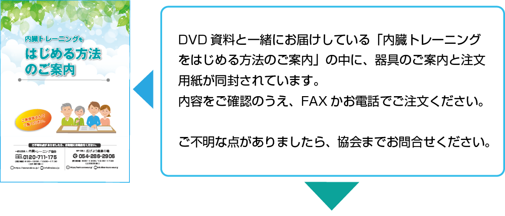 内臓トレーニングを始めるには、いくつか方法がありますのでご案内します。ご自身のため、ご家族のため、あなたに合った方法を選んでください。