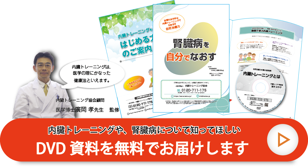 内臓トレーニングや腎臓病、はじめる方法をご案内した資料をお届けしていますので、お手元にない方は、コチラからお申込みください。